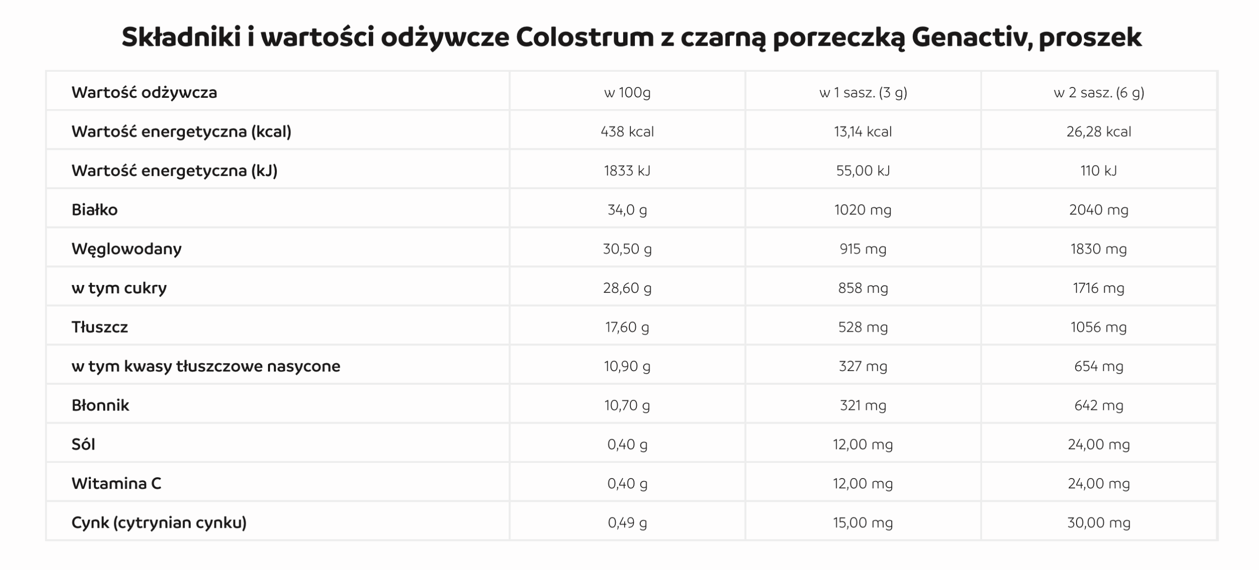 Opakowanie i przechowywanie Colostrum z czarną porzeczką Genactiv, proszek