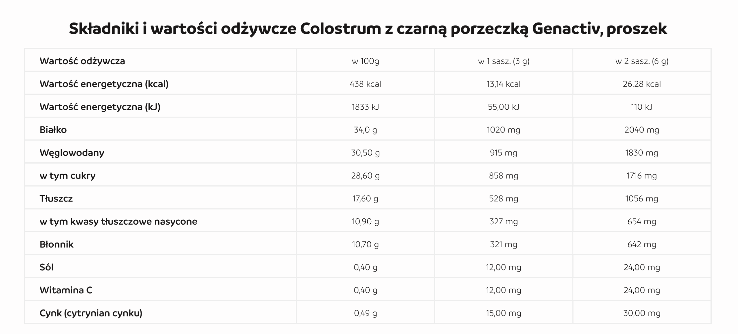 COLOSTRUM Z CZARNĄ PORZECZKĄ GENACTIV, 30 saszetek