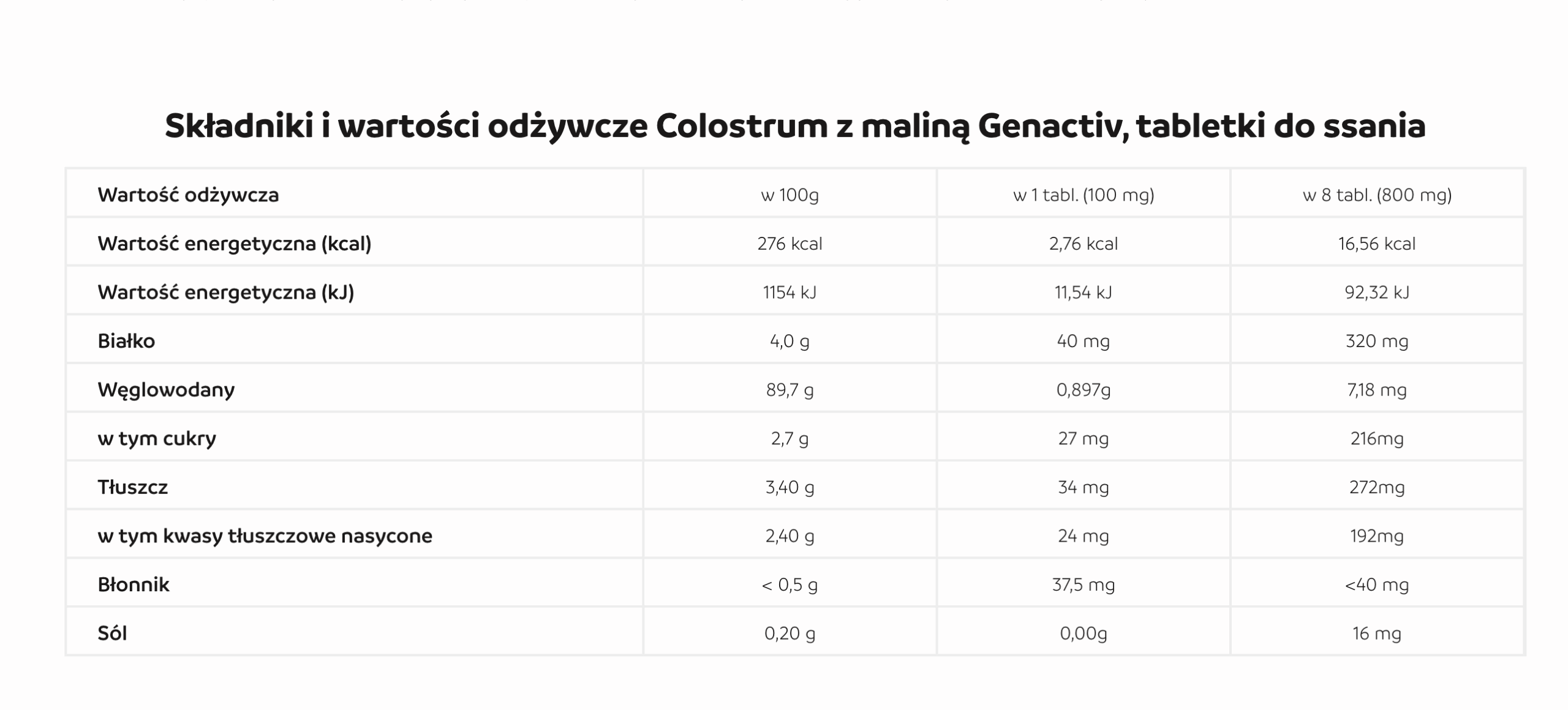 Stosowanie Colostrum z maliną Genactiv, tabletki do ssania