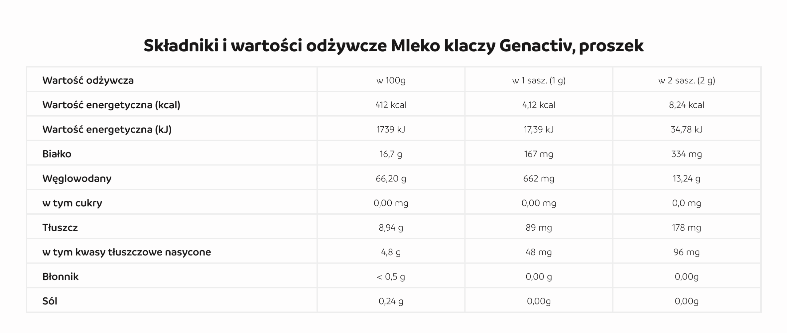 MLEKO KLACZY GENACTIV, 30 saszetek