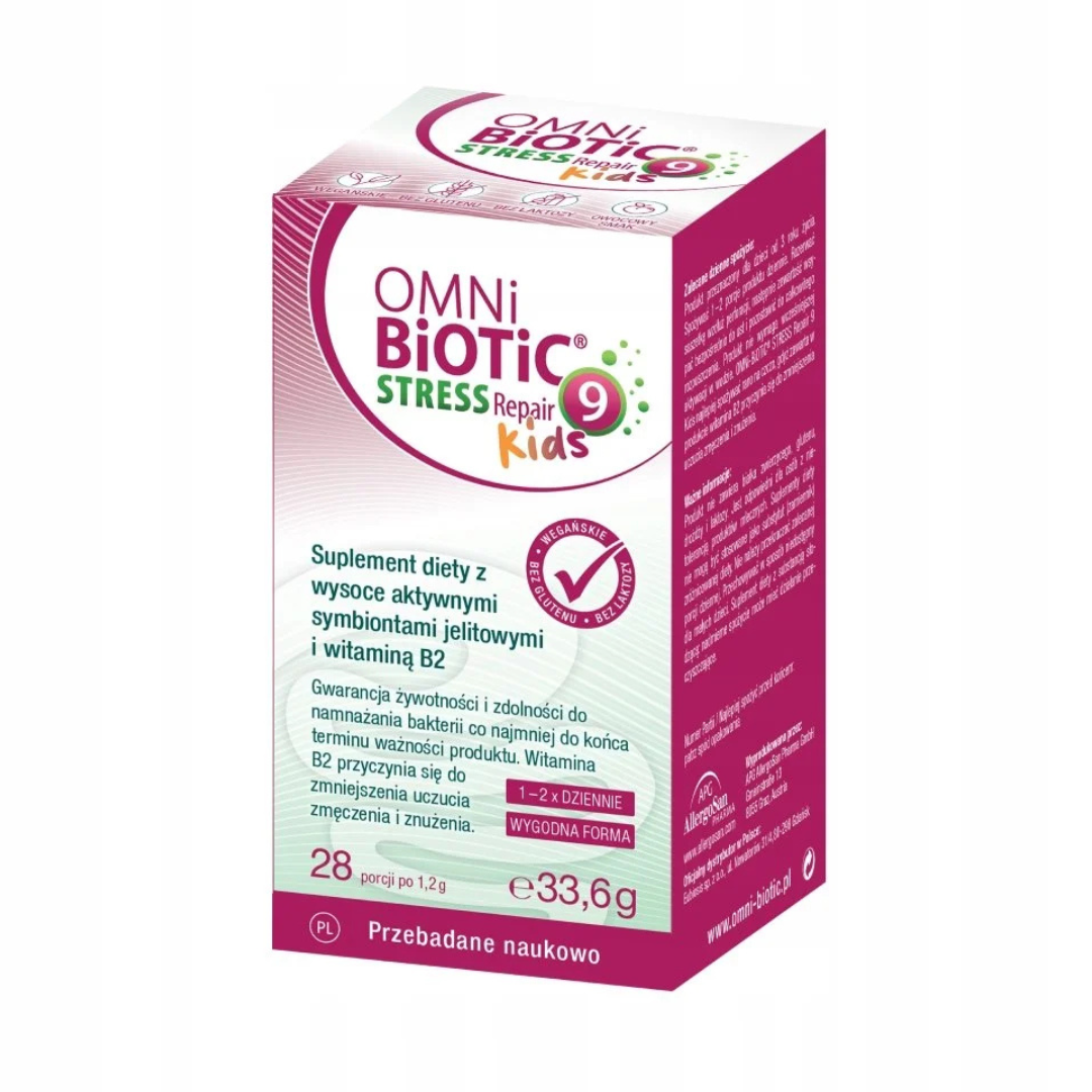 OMNi-BiOTiC® Stress Repair 9 Kids to psychobiotyk dla dzieci w wieku szkolnym, wspierający różnorodność bakteryjną jelit w codziennych wyzwaniach szkolnych. Kompozycja bakteryjna 9 szczepów bakterii probiotycznych bestsellerowego psychobiotyku OMNi-BiOTiC® Stress Repair 9